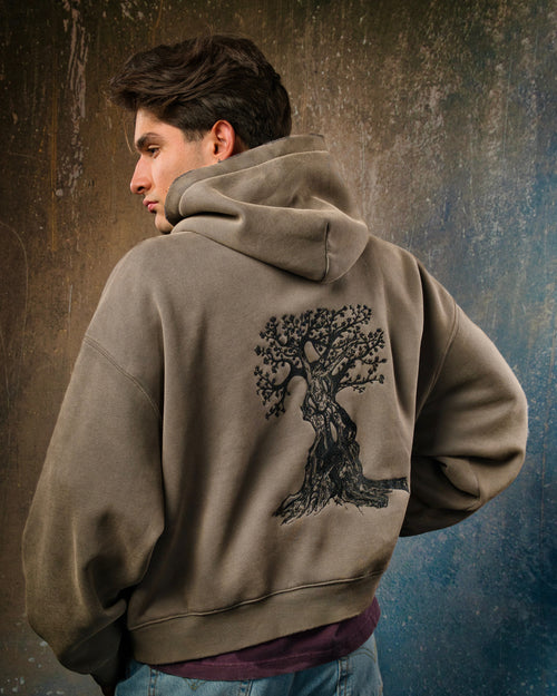 Obsidian Threads — Olive Washed Heavyweight Hoodie